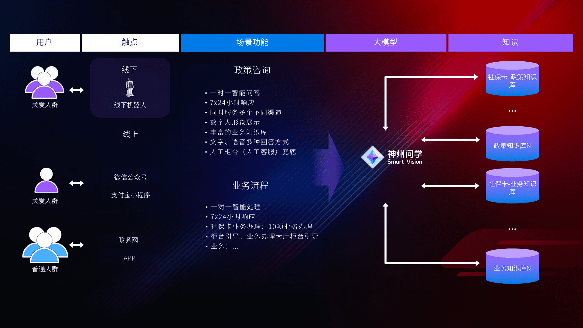 • 线上线下全覆盖:线上提供微信公众号、、支付宝小程序、、、、政务网、、、app多种渠道,,与线下机器人形成完整服务体系。。。。